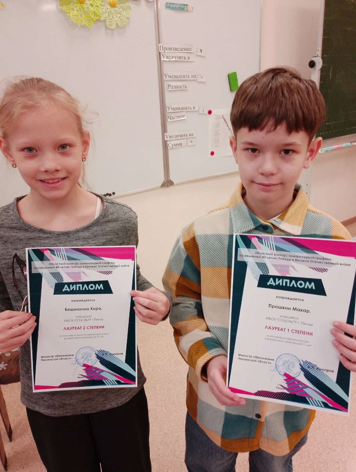 В ноябре-декабре 2024 года обучающиеся 3 «Г» класса Прошкин Макар и Бешнихина Кира участвовали в областном конкурсе компьютерной графики, посвященный 80-летию Победы в Великой Отечественной войне и заняли 1 и 2 места. Молодцы, ребята!